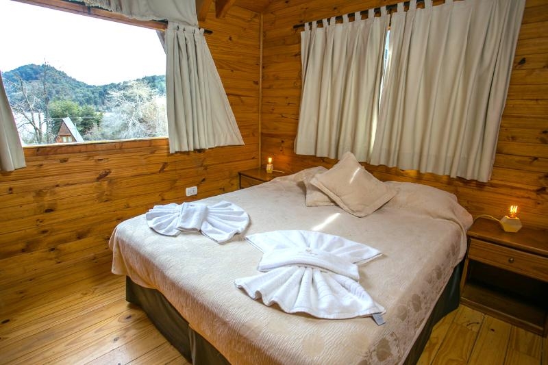 ~ CABAÑAS TRADICIONALES: Capacidad: 4/5 personas. Wi Fi. Calefacción. Construidas en 2 plantas: P.B: cocina comedor con todas las comodidades y equipamiento. TV Philips pantalla plana, DirecTV. Baño completo. P.A: dos dormitorios independientes. Uno con cama matrimonial y otro con dos camas gemelas, más una cama extra en el corredor.