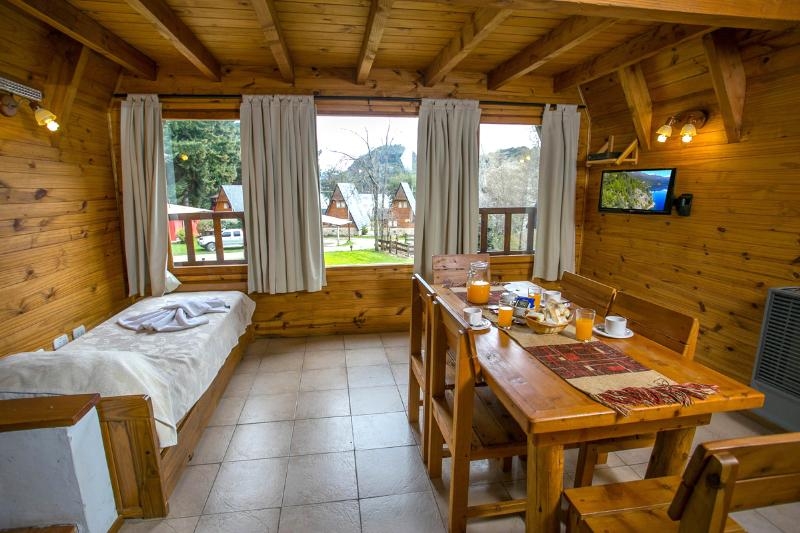 ~ MONOAMBIENTE: Capacidad: 2/3 personas. Mobiliario: 1 cama matrimonial + 1 cama de una plaza. Ropa de cama. TV Philips pantalla plana, DirecTV. Wi Fi, calefacción. Cocina completamente equipada. Lindante con el Club House. Lo mejor: Impresionante vista de las montañas que rodean a la Laguna del Trébol.