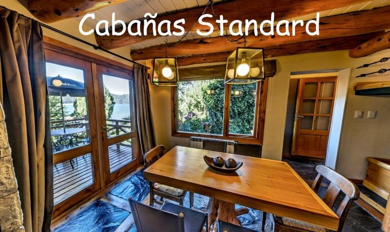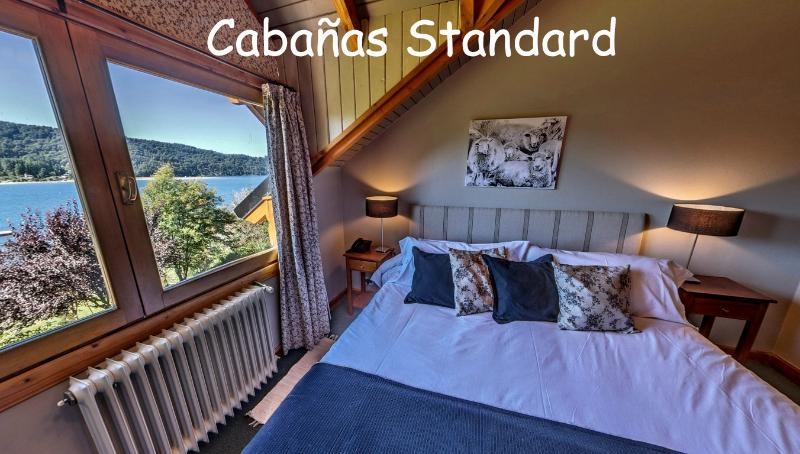 Cabañas de 2 a 4 personas, de un monoambiente integrado con deck al exterior - incluye mesa, sombrilla y sillas - con vista al lago. En la planta alta (balconeando con la planta baja) cuenta con una cama matrimonial. La PB tiene un living con mesa comedor y sillas, hogar a leña, cocina completa, baño con hidromasaje, sillón cama para 2 singles.